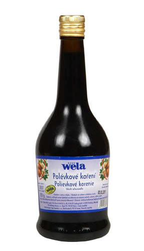 Tekutý kořenící přípravek k dochucení pokrmů. Tekuté koření je získáno z rostlinných bílkoviny obsahujících surovin.