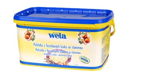 Pšeničná mouka, sušená syrovátka, uzená slanina 13 %, zelené fazolové lusky 12 %, brambory 12 %, látka zvýrazňující chuť (glutamát sodný), cibule, jodidovaná jedlá sůl, rostlinný bílkovinový hydrolyzát, modifikovaný škrob, cukr, rostlinný tuk (neztužený), směs koření (saturejka, tymián, česnek, pepř černý), barvivo riboflavin.
