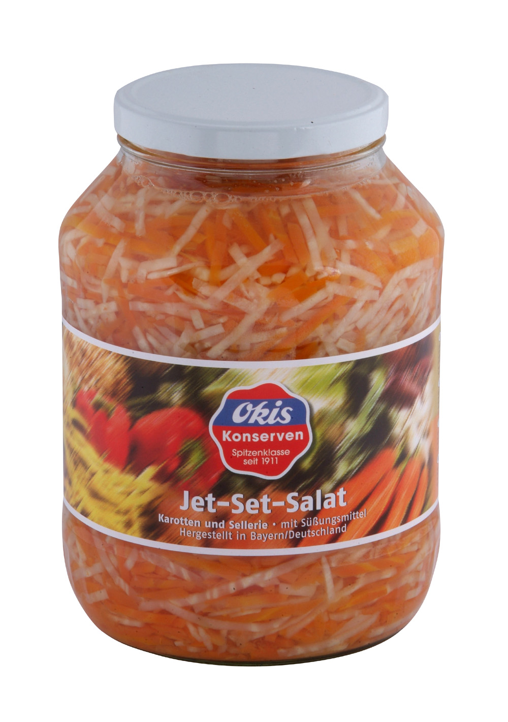 (V proměnlivém poměru: karotka, celer), voda, vinný ocet, jodidovaná jedlá sůl, přírodní aroma, regulátor kyselosti kyselina citrónová, sladidlo sacharín.